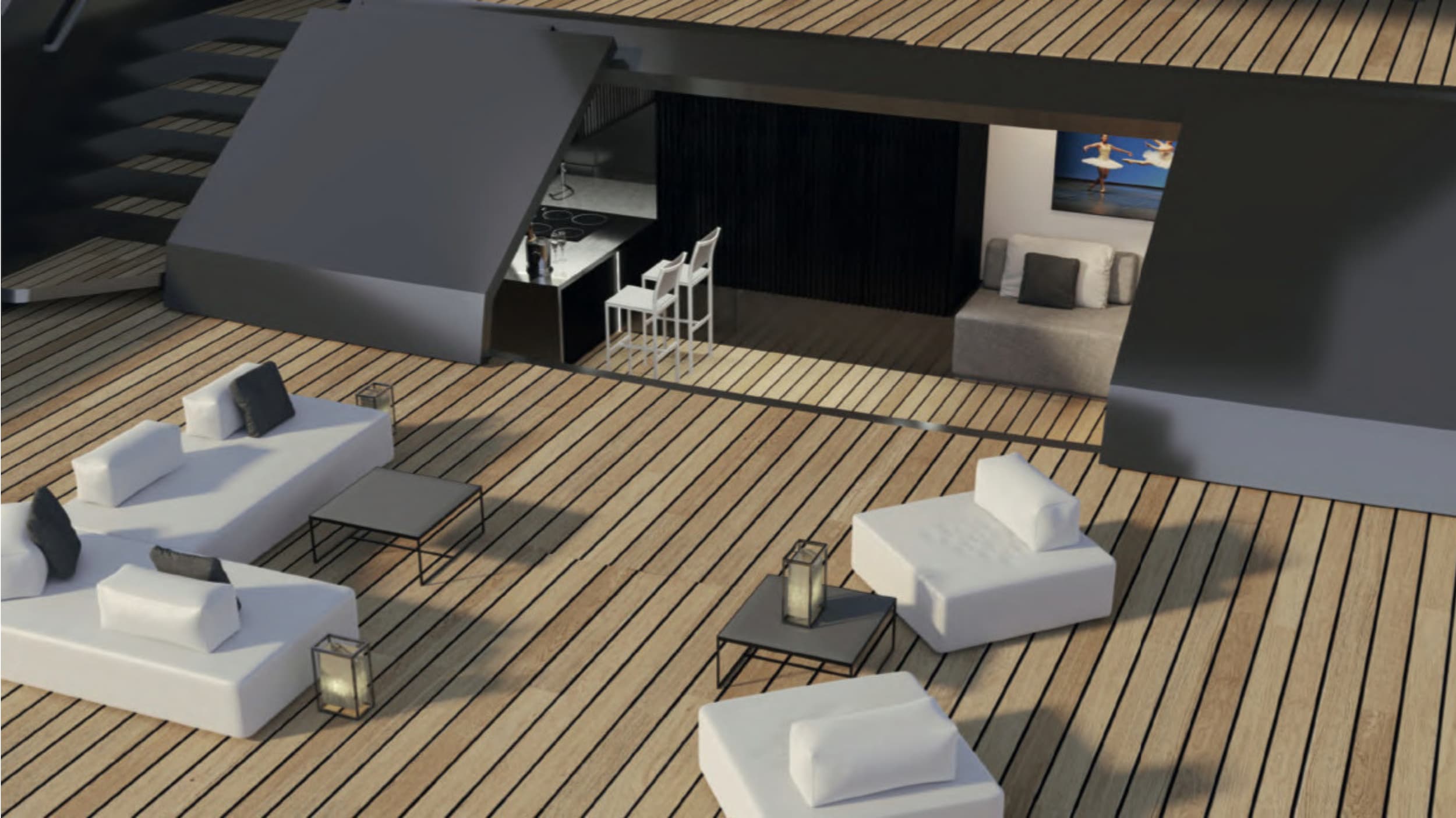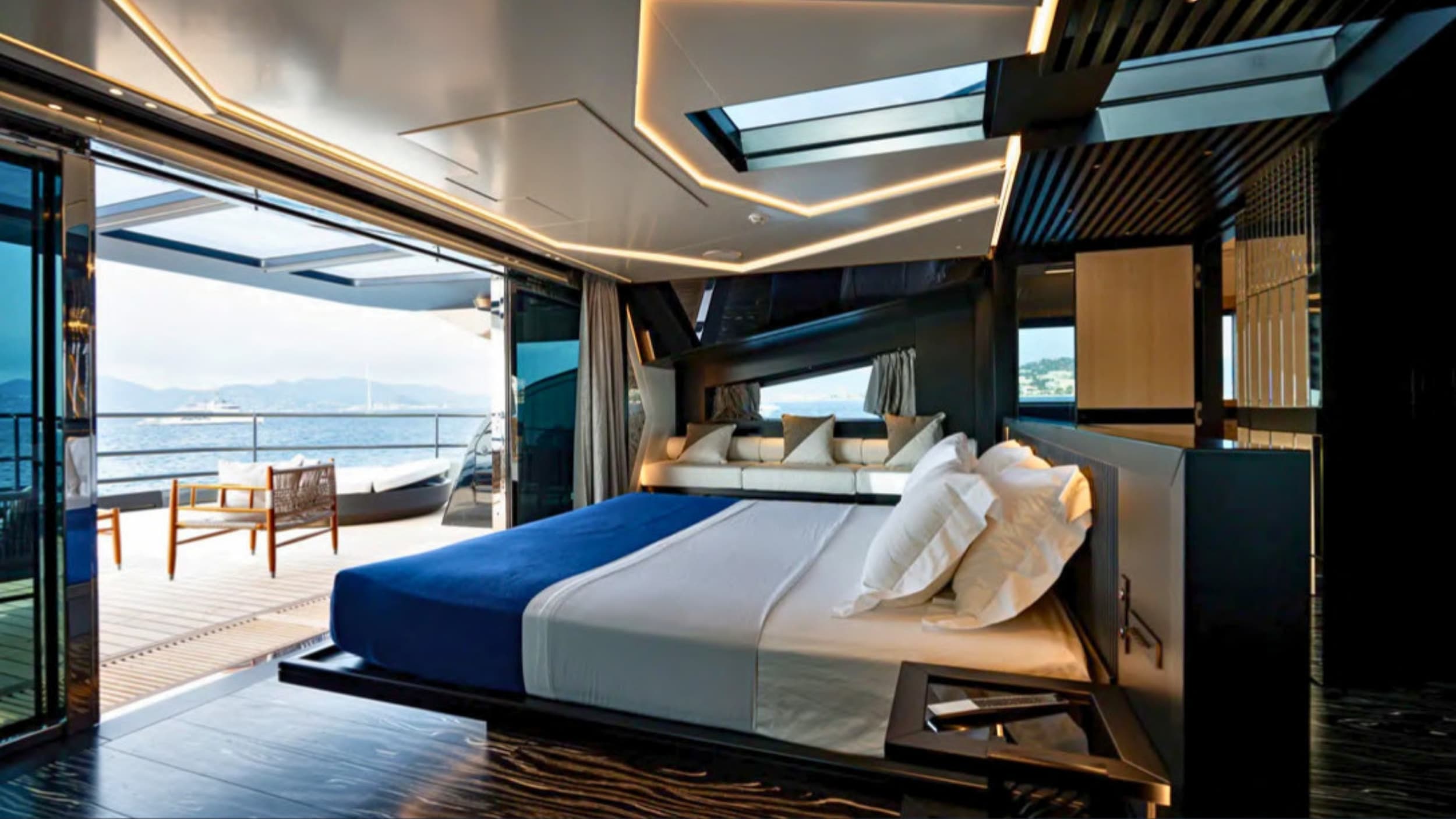 The decks are designed for connection—to the water, to your guests, and to the moment. A shaded cockpit lounge flows to expansive sunpads, while the transformer swim platform creates seamless sea access. The full-beam beach club brings the waterline experience to life, perfect for swimming, launching toys, or entertaining close to shore.